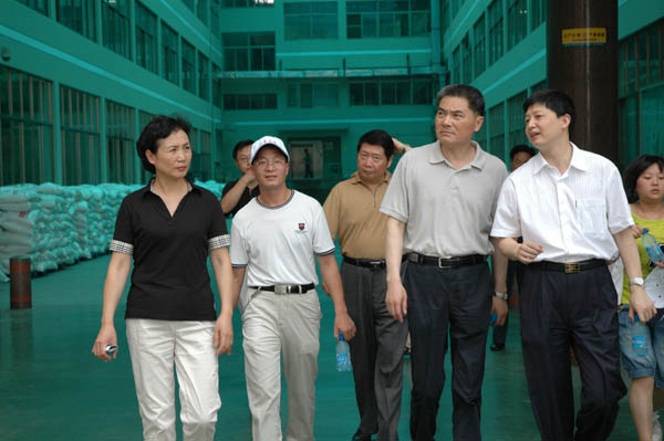 2007年7月12日下午,浙江省常務副省長金德水協各級領導一行10多人,以及金華市委常委、義烏市委書記吳尉榮等20多位領導,前來本公司進行土地節(jié)約集約資源利用實施情況的實地考察,公司董事長樓仲平對金省長一行匯報了雙童公司近年來對企業(yè)節(jié)約集約用地、循環(huán)經濟、生態(tài)工廠等建設情況的報告。