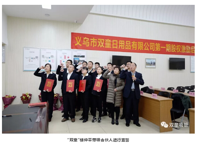 現(xiàn)如今,90%的民營(yíng)企業(yè)主都希望子女接班,而“雙童”卻選擇了經(jīng)理人接班。12月19日,雙童吸管第一期股權(quán)激勵(lì)啟動(dòng)大會(huì)隆重舉行,12位新晉股東脫穎而出,成為企業(yè)合伙人!