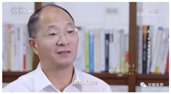 2018年12月19日晚,央視CCTV—10 播出了大型紀(jì)錄片《四十年四十個(gè)第一》第十五集《第一批小商品市場(chǎng)》!其中,講述了以“雙童”樓仲平為代表的幾位義烏商人的發(fā)展故事,講述了義烏在針頭線(xiàn)腦中發(fā)家致富,從貧瘠小縣城發(fā)展為全球小商品市場(chǎng)的蝶變故事!