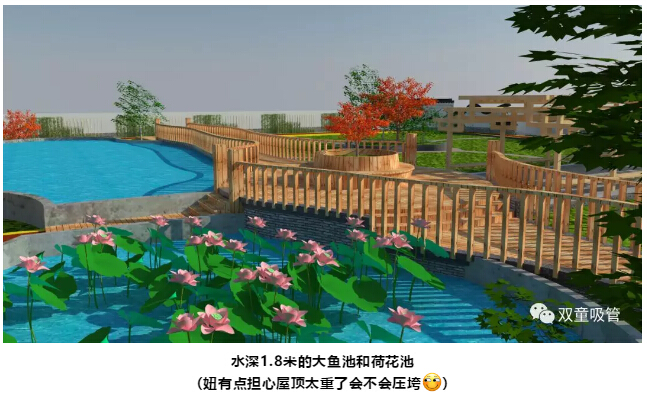 值得一提的是,光是空中花園的養(yǎng)魚(yú)池就足足500多平米,可以養(yǎng)千把斤魚(yú),再加上300平米的荷花池,蓮藕種植、荷花觀(guān)賞一樣也不落!站在橋上觀(guān)景,花香陣陣襲來(lái),魚(yú)兒自由來(lái)去,心情立馬就放松了!