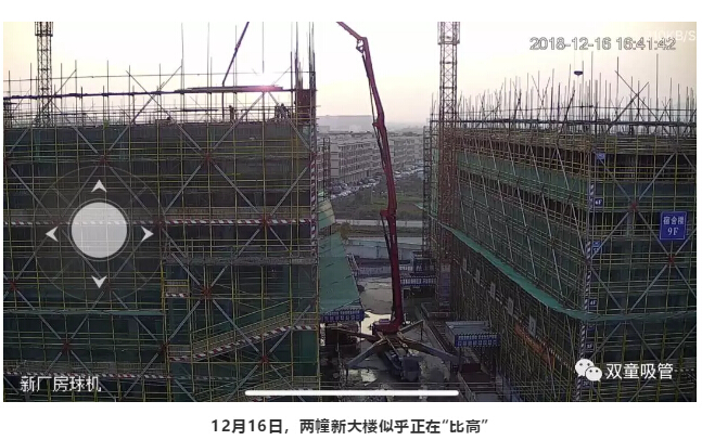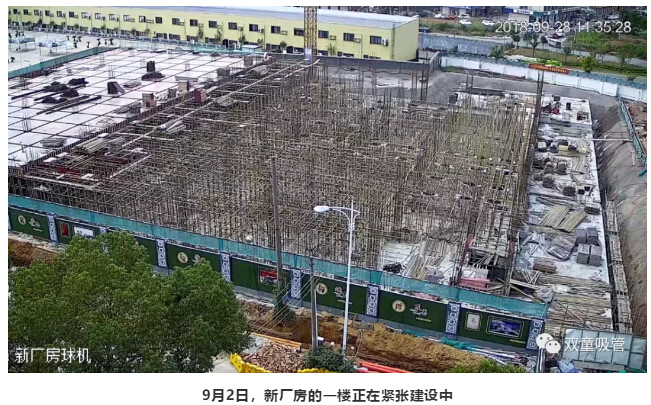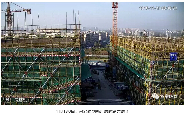 在建設(shè)過(guò)程中,由于“雙童”二期工廠(chǎng)緊靠“雙童”老廠(chǎng)區(qū),我們?cè)诶蠌S(chǎng)區(qū)頂層裝了監(jiān)控?cái)z像頭,全面記錄了大樓的成長(zhǎng)過(guò)程!