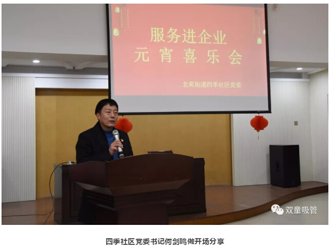 2月18日晚,“雙童”聯(lián)合北苑街道四季社區(qū)黨委,發(fā)揮"雙童同心圓"的黨建引領作用,共同開展了元宵喜樂會活動。此次活動除了“雙童”員工代表之外,還邀請了北苑兩新企業(yè)的支部書記、職工代表,大家聚在一起共度溫馨的元宵佳節(jié)!
