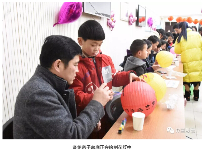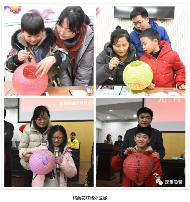 “雙童是我家,我們愛護它”,“同心同德,同心同向,同心同行”……小小的燈籠經(jīng)過描繪后,顯得格外溫馨……