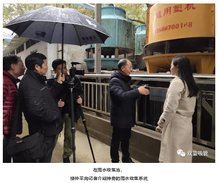 前天下午,金華電視臺(tái)和金華之聲的記者專門(mén)為了“雙童”的雨水收集系統(tǒng)而來(lái),并跟著樓總詳細(xì)了解了雨水到底是如何“變”成錢(qián)的!