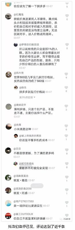 此段視頻一發(fā)布后,在四個小時內(nèi)點贊量就直沖1萬!抖友們圍繞“‘薄利多銷’還行的通嗎?”這個話題進行了激烈的辯論??纯矗@哪是評論區(qū)啊,這明明是辯論賽現(xiàn)場呀!