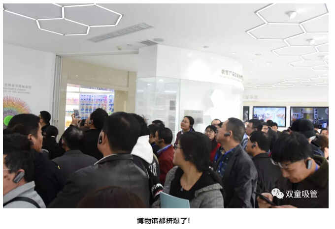 隨后,“雙童”李二橋帶領(lǐng)大家來(lái)到中國(guó)吸管博物館。大家一起參觀了產(chǎn)品發(fā)展歷史展示區(qū)、吸管生產(chǎn)技術(shù)展示區(qū)、吸管產(chǎn)品形態(tài)展示區(qū)等各類吸管的展示區(qū)域,了解吸管的發(fā)展與變遷,琳瑯滿目的創(chuàng)新吸管讓大家看花了眼!