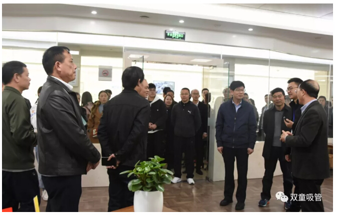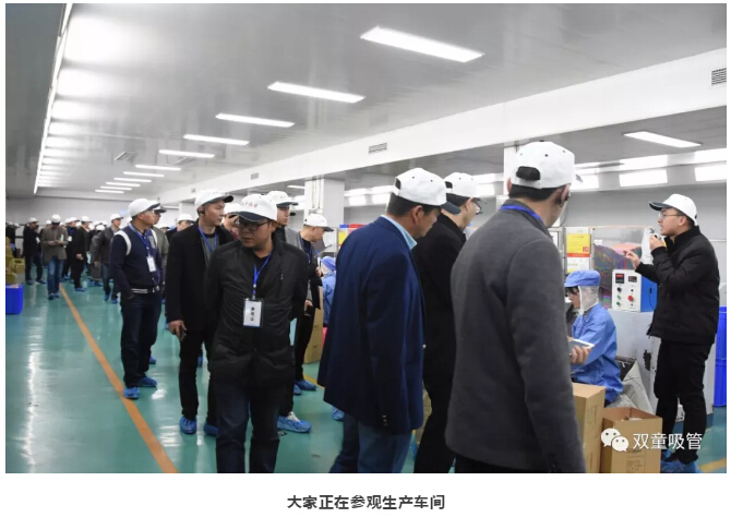 緊接著,“雙童”李二橋也帶大家來(lái)到生產(chǎn)車間參觀產(chǎn)品生產(chǎn)線,實(shí)地考察“雙童”的安全生產(chǎn)工作。