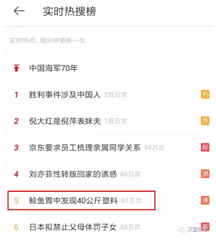 近日,“鯨魚胃中發(fā)現(xiàn)40公斤塑料”的話題