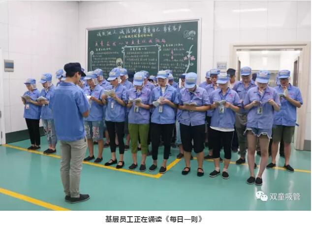 當(dāng)然,“雙童”的這些文化標(biāo)語(yǔ)除了在墻面展示之外,也被收錄到“雙童”企業(yè)文化叢書《每日一則》當(dāng)中,每天誦讀一篇《每日一則》成為“雙童”員工們的必修課,哪怕是在車間里工作的基層員工也是每天雷打不動(dòng)地要誦讀哦!