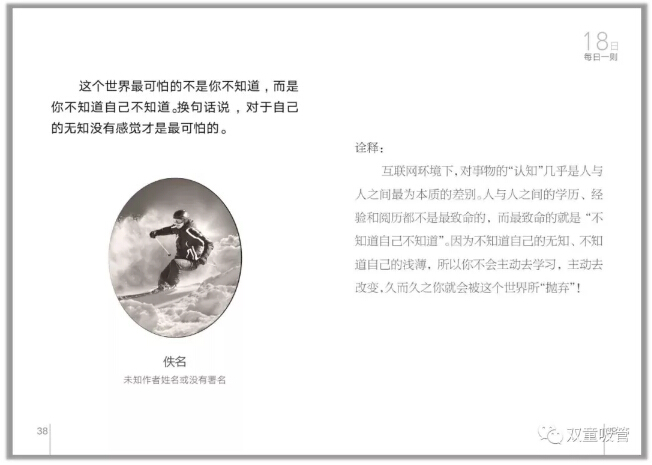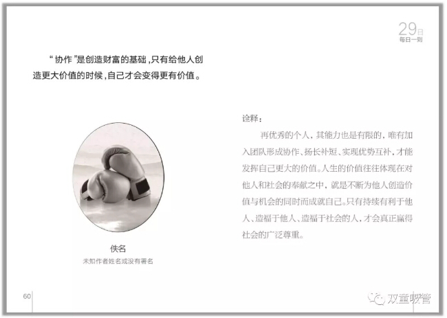 這些文化標(biāo)語(yǔ),可不是隨便找來掛一掛的哦!它們都是從幾千句名人名言、經(jīng)典好書中擇取篩選出來,并經(jīng)過我們的詳細(xì)注釋,成為“雙童”企業(yè)文化的一部分!