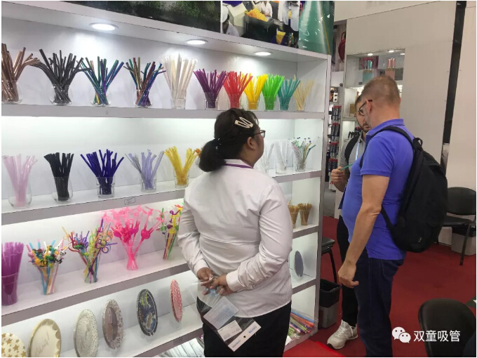 瞧!“雙童”展區(qū)展示著各式各樣的可食用淀粉吸管,它們成為了此次展會的焦點,大批新老客商駐足詢價,現場真是擠爆啦!