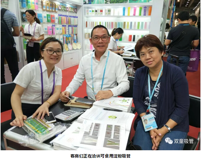 “雙童”可食用淀粉吸管首次上市就在廣交會上引爆啦,許多客商都慕名而來了解這根“神奇的吸管”!