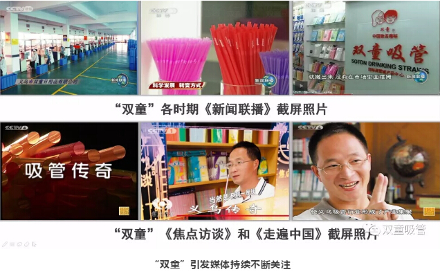 通過(guò)企業(yè)創(chuàng)造差異化亮點(diǎn),“雙童”獲得了砸廣告都不能獲得的關(guān)注度和流量,成為了吸管行業(yè)的“金牌子”,也讓大家改變了對(duì)吸管這類產(chǎn)品“低、小、散、弱”的傳統(tǒng)定義。通過(guò)各大媒體對(duì)“雙童”的報(bào)道和宣傳,“雙童”品牌不花一分錢,就傳遍了大江南北。