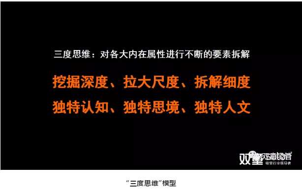 產(chǎn)品要轉(zhuǎn)化成商品就需要讓產(chǎn)品擁有精神屬性、文化屬性等,因此,“雙童”通過“三度思維”對各大內(nèi)在屬性進行不斷的要素拆解。