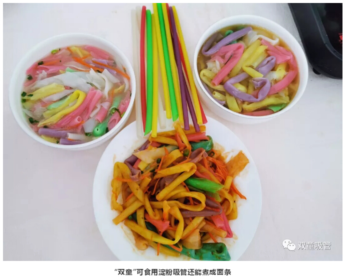 比如:把最容易丟棄和不能回收利用的塑料吸管改成“雙童”可食用淀粉吸管!
