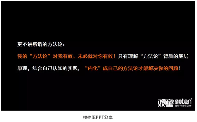 所謂的方法論,如果遵循案例去理解的話并不難,但是案例的呈現實際上已經告訴你答案了。在這個過程中,大多數人之所以在獲取了許多的方法論之后,創(chuàng)業(yè)還會有許多的迷茫,是因為:我的方法論是我的,對我有效,但是未必對你也有效!