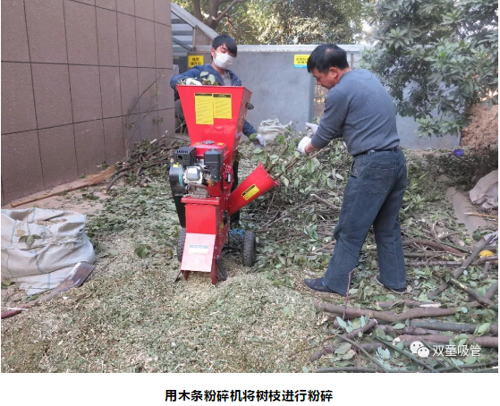 “雙童”的園林崗位配有兩到三人。他們負責將修剪綠化植物產(chǎn)生的樹枝、樹葉,用木條粉碎機粉碎。之后,碎末和部分廚余垃圾、柚子等一起,被投入堆肥發(fā)酵池。
