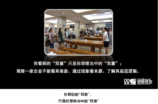 樓仲平以“雙童”為例:很多人來“雙童”參觀都覺得“雙童”的硬件很好,但是我做的第一件事就是“破界”,你看到的“雙童”只是你思維當(dāng)中的“雙童”,要了解‘雙童’為什么會這么做,企業(yè)這樣做的底層邏輯在哪里,一味照搬仿制是沒有意義的!