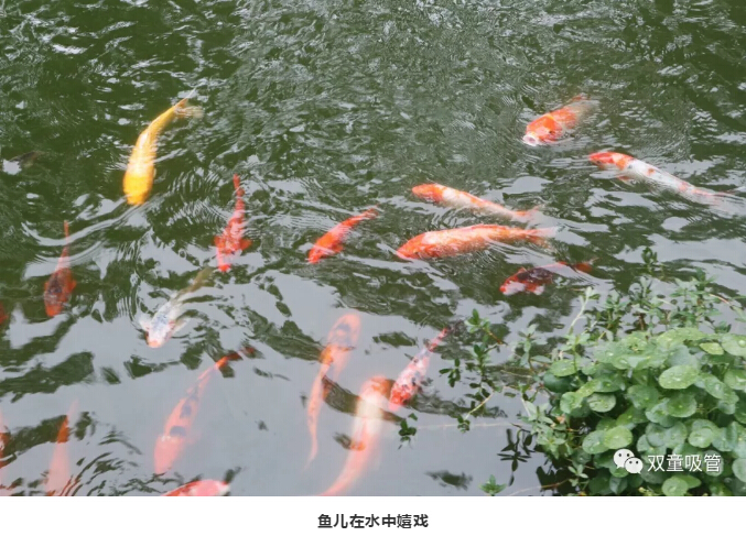 清風(fēng)吹拂過荷塘,花瓣隨風(fēng)輕輕搖擺,帶來陣陣荷花獨有的清香。景觀湖中的魚兒成群結(jié)隊游動,現(xiàn)場一派生機勃勃的景象。