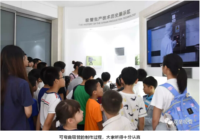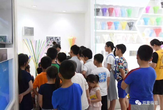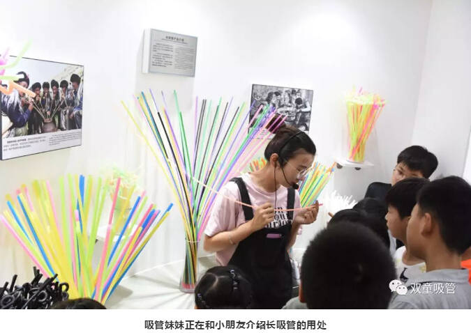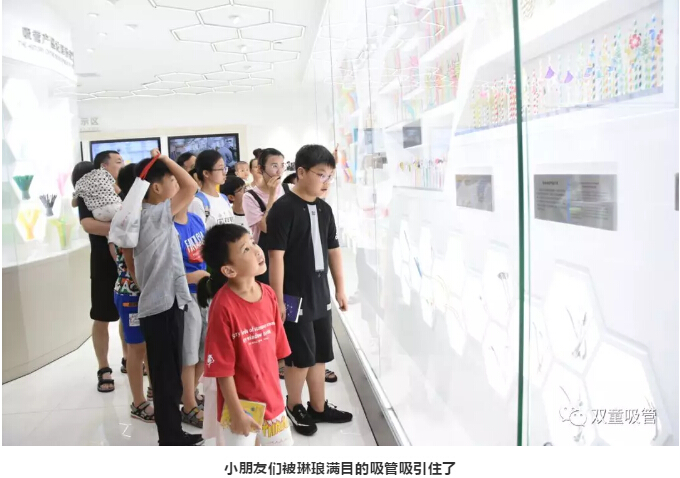 進入吸管博物館后,吸管妹妹給小朋友們介紹了可彎曲吸管的制作過程,長吸管的用處,這也引起了小朋友們滿滿的好奇心,紛紛緊跟吸管妹妹的身后,認真的聆聽介紹。