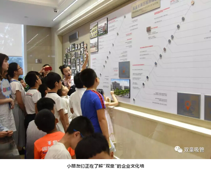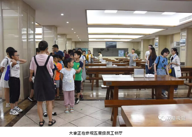 參觀完博物館后,大家接著參觀了“雙童”員工餐廳和企業(yè)文化墻。小朋友們一如既往地緊跟吸管妹妹身后,深怕自己錯過什么“秘密”。