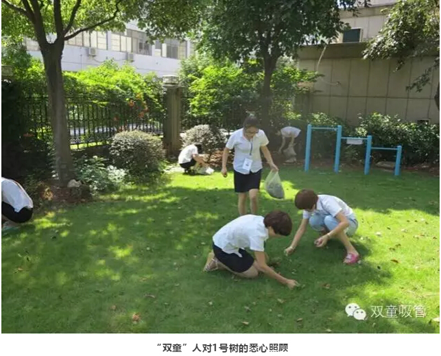 而為了讓“雙童1號樹”成長得更好更快,“雙童”人平日對它的悉心照顧也是不可或缺的!施肥料、拔雜草,連樓總也非常關(guān)注它的成長呢!