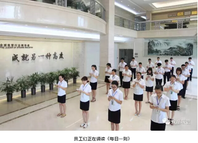 首先,就是晨讀環(huán)節(jié)。“雙童”所有員工在上班之前都會在統(tǒng)一時(shí)間誦讀“雙童”的企業(yè)文化叢書——《每日一則》。