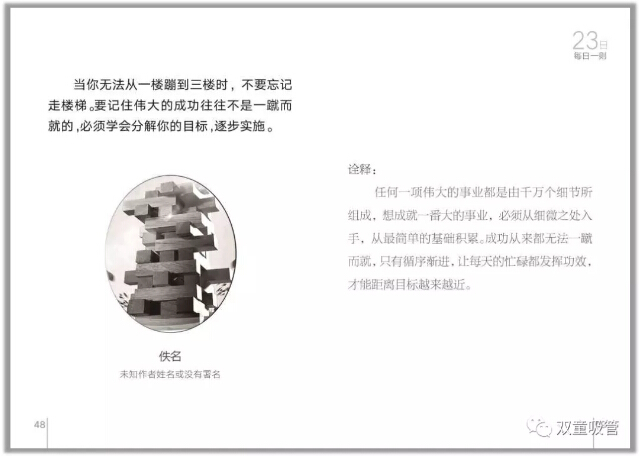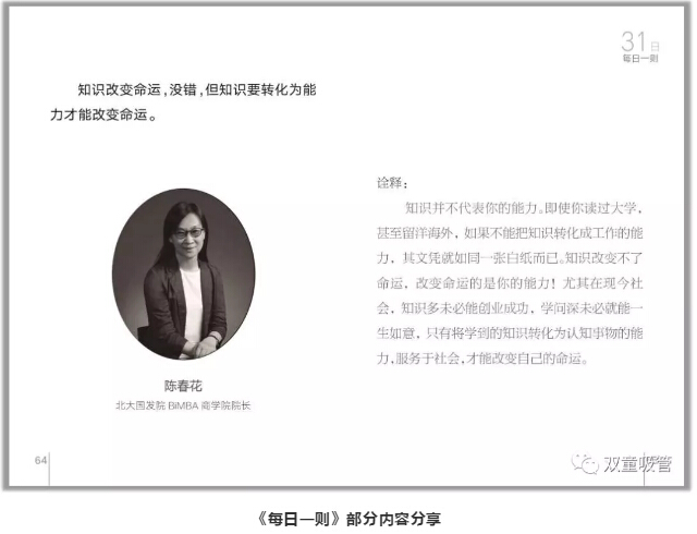 這本《每日一則》里,共收錄了31句名人經(jīng)典語錄,以月度為單位讓員工進(jìn)行重復(fù)誦讀,內(nèi)容包含了專注、創(chuàng)新、共贏、正氣等主題。這可是員工們從幾千條好句里挑出來,并且自己解析的呢!