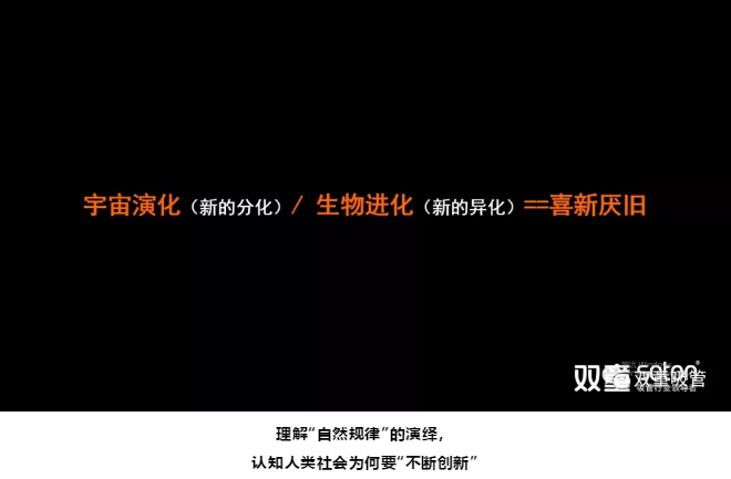 樓仲平繼續(xù)分享道:要真正認知“創(chuàng)新”,首先要多去學習那些看似“無用”的知識,運用天文學、生物學、物理學的宏觀角度,理解在“自然規(guī)律”的演繹和進化,再通過逐級推理的方式去認知人類社會為什么要“不斷創(chuàng)新”。