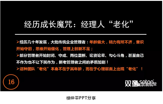 在公司創(chuàng)辦初期聘用的一批管理層,在2010年前后,大部分管理人員逐漸出現:依托于慣性思維,憑經驗用老方法解決新問題,不愿意學習等問題,團隊的成長也因此遇到了瓶頸。