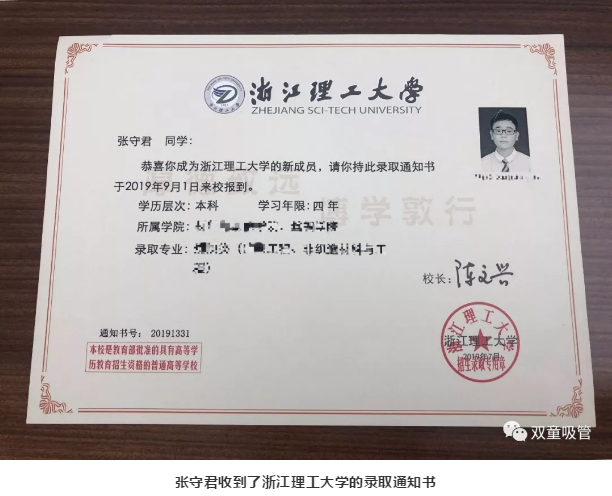 “雙童”寶貝張守君考上省重點(diǎn)大學(xué)