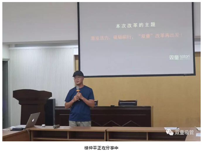 8月16日,當(dāng)家人樓仲平分享“雙童”改革反思篇《“向死而生”,“雙童”只有六個月!》,引導(dǎo)員工們自我反省,激發(fā)組織活力;8月17日,“雙童”總經(jīng)理李二橋分享改革篇《激發(fā)活力、砥礪前行》,分享“雙童”的改革方向;8月18日—19日,開展改革方案預(yù)案討論會,所有管理層圍繞改革進(jìn)行深度思考和探討。