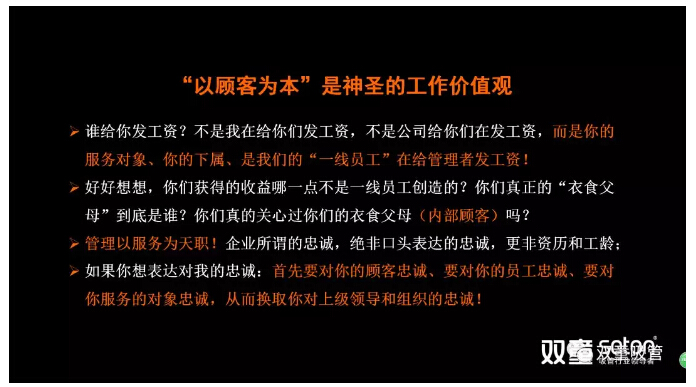 第二問題:對于管理者來講“以顧客為本”的顧客是一線員工。