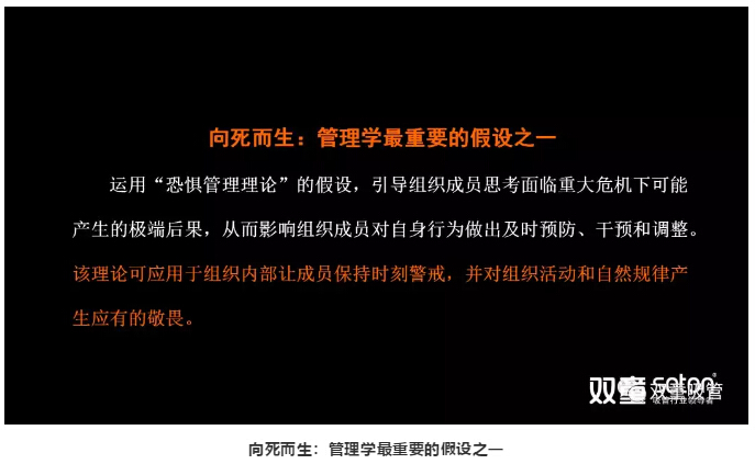 德國哲學(xué)家馬丁·海德格爾提出“向死而生”,引導(dǎo)人們正確認(rèn)知“死”的概念來激發(fā)我們內(nèi)在“生”的欲望,以此激發(fā)人們內(nèi)在的生命活力。通過對“死”反悟,生命(組織或企業(yè))是可以延長的,從而煥發(fā)出組織積極活力!