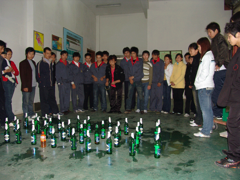 大會結(jié)束后,由工會劃撥費用,并組織全體員工的娛樂活動開始了,首先進(jìn)行的是拔河比賽;拔河比賽按照口杯車間與包裝車間,吸管車間甲班與乙班,再由各小組第一名之間比賽,供銷部與各科室比賽。