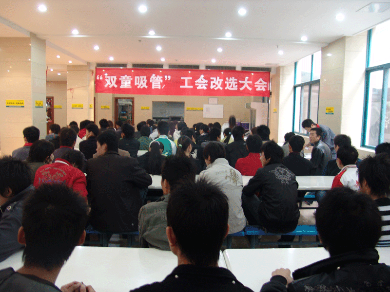 2007年11月16日下午,公司召集全體員工在公司食堂召開工會改選大會,會議由工會主席張國俊副總主持,張主席對公司從2002年12月1日工會成立以來工會所做工作向全體員工進(jìn)行了詳細(xì)的報告。因為人員有所變動,按照工會法規(guī)定5年一屆的工會需要重新進(jìn)行改選,張主席對工會法和工會代表選舉規(guī)程做了介紹,通過上午的職工代表大會選舉產(chǎn)生76名代表,大會一致通過由76名職工代表擔(dān)任工會代表。并表示對次名單進(jìn)行公布3天,如果有異議的還可以向工會提出意見。