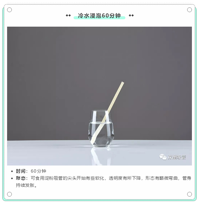 在2小時(shí)之后,可食用淀粉吸管會(huì)逐漸糊化分解,神奇消失,源于自然,歸于自然!
