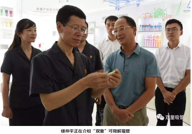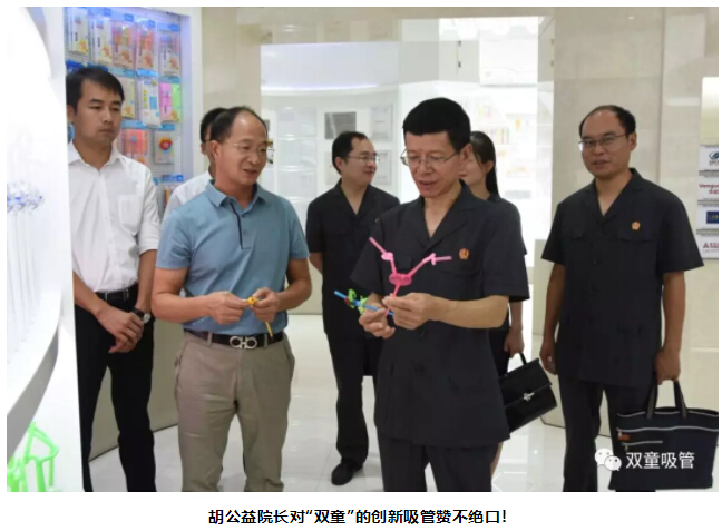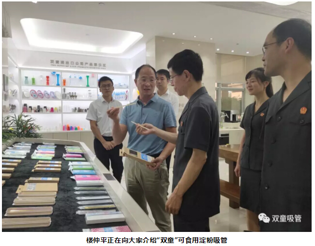 胡公益院長(zhǎng)聽完介紹后,對(duì)這款綠色環(huán)保的可食用淀粉吸管稱贊連連。