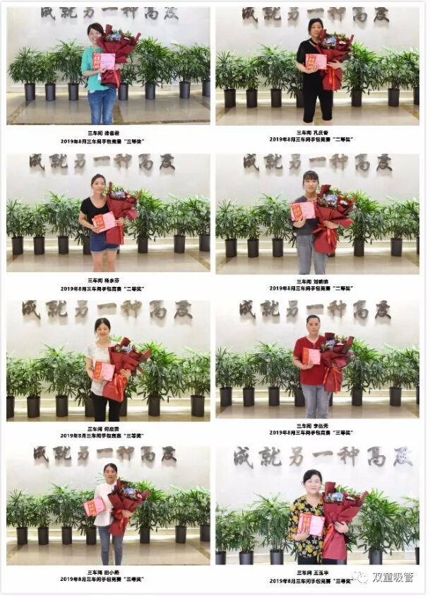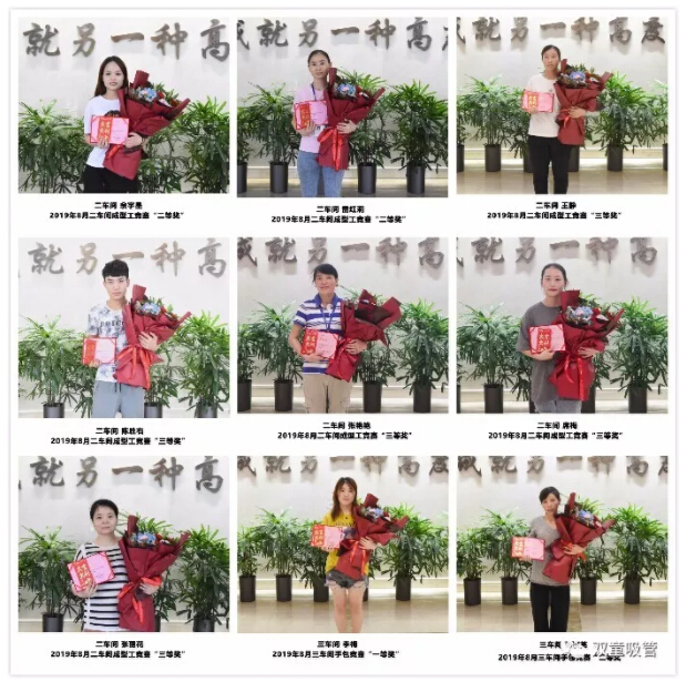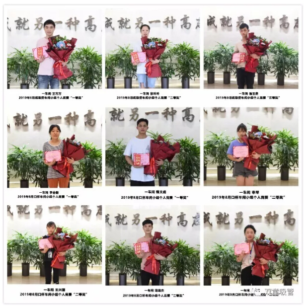 2019年8月三車間手包競賽一等獎:李梅二等獎:楊蓮英、孔慶香、楊永芬、劉晴晴三等獎:何啟貴、李伍秀、田小燕、王玉華、徐善君