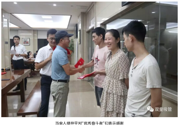 9月9日晚,“雙童”召開了關(guān)于8月21日—8月31日階段性競賽獎勵表彰大會!會上,當(dāng)家人樓仲平再次為所有員工站臺,兌現(xiàn)了讓每位“優(yōu)秀奮斗者”獲得更高獎金的承諾。同時,樓仲平表示每個月都將與員工站在一起,并鼓勵和推動所有員工“以奮斗者為本”,與“雙童”共同成長!