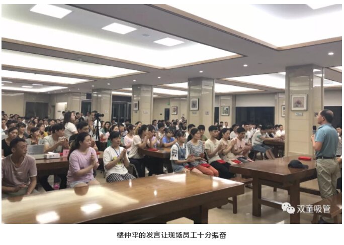 接下來,“雙童”樓仲平再次為員工站臺,進(jìn)行了發(fā)自肺腑的發(fā)言:“此次改革我是認(rèn)真的,我是下定決心的,我與大家共同推動!8月20日,我為大家站臺,承諾每月有20萬獎金給“優(yōu)秀奮斗者”,讓所有員工都有機(jī)會獲得榮譽(yù),讓每位員工都能感覺到被尊重。