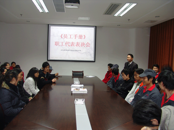 2008年1月3日雙童公司工會(huì)組織工會(huì)代表和職工代表(76人)針對(duì)公司08年《員工手冊(cè)》的修訂頒布進(jìn)行討論表決,實(shí)際到會(huì)68人,經(jīng)過(guò)半天時(shí)間逐條逐句的討論,《員工手冊(cè)》各項(xiàng)條款最后一致得以通過(guò),會(huì)議最后決定在1月5日正式發(fā)布執(zhí)行。