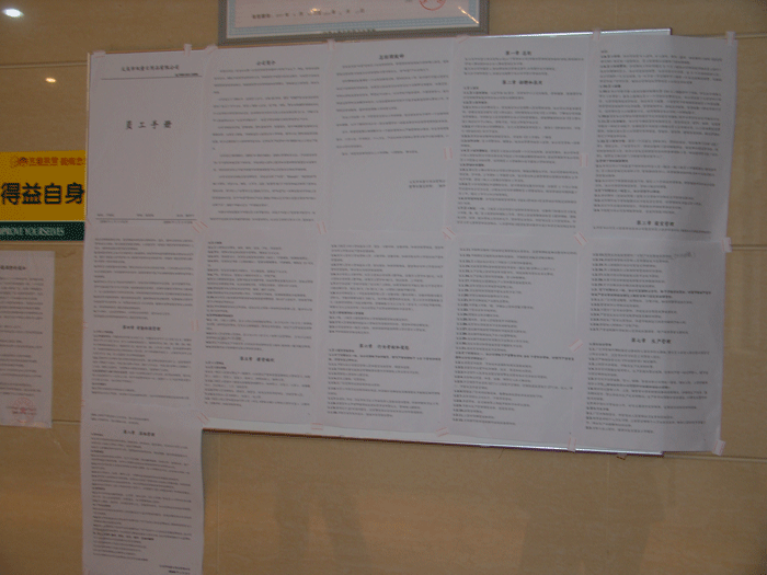 這是繼2007年12月29日下午工會(huì)代表和職工代表關(guān)于討論《員工手冊(cè)》條款的第二次會(huì)議,《員工手冊(cè)》的草稿經(jīng)過(guò)12月30日至1月2日4天時(shí)間在宣傳欄內(nèi)公布張貼,讓全體員工參與了《員工手冊(cè)》的充分討論,按照工會(huì)代表和職工代表的意見(jiàn)進(jìn)行修改完善。本《員工手冊(cè)》的出臺(tái)充分發(fā)揮了工會(huì)組織的作用,也讓職工代表們完全體會(huì)到每位員工都享有參與公司制定文件的權(quán)力。