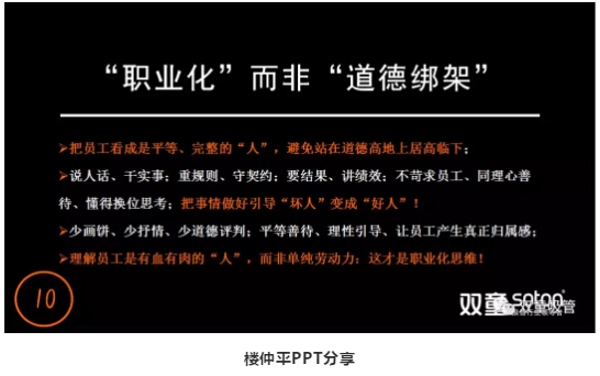 樓仲平認(rèn)為,所謂“忠誠”的員工并非要一輩子留在公司,只要他在契約范疇內(nèi)不違背公司,在合約解除后不損害公司,就是“忠誠”的員工。