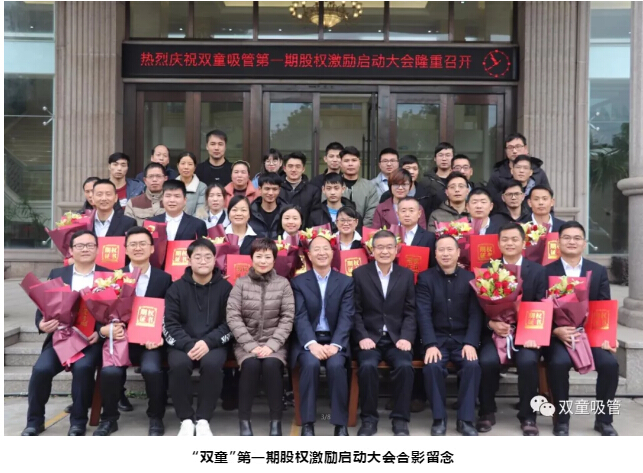 在2018年12月19日,在“雙童”第一期股權(quán)激勵啟動大會上,“雙童”首批12位核心員工正式簽約成為“雙童”的經(jīng)營伙伴,我們以股份合伙、業(yè)務(wù)合伙等“合伙激勵”的 方式讓優(yōu)秀人才變?yōu)楹匣锶?,讓員工和組織的目標(biāo)長遠(yuǎn)契合、共同生長、共享價值創(chuàng)造的有效延伸!