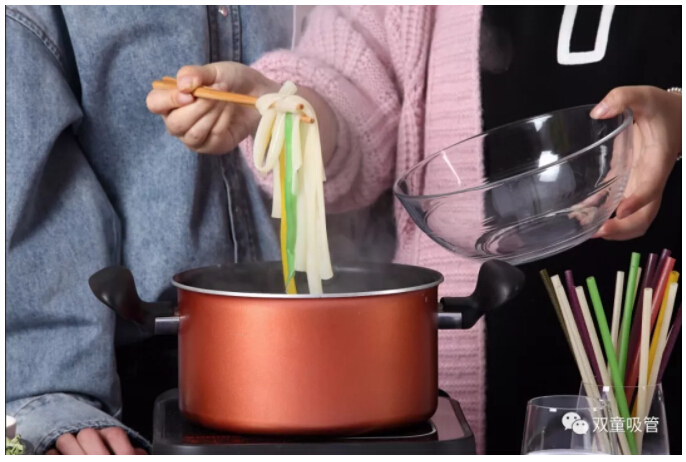 除此之外,由于可食用淀粉吸管用料天然,也可以像蔬菜面條一種煮起來吃哦!快看,有圖有真相!