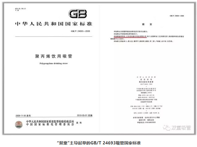 雖然,標準的制定工作不能直接給企業(yè)創(chuàng)造效益和產(chǎn)出,但能讓我們始終站在產(chǎn)業(yè)制高點上,從而看到別人看不到的產(chǎn)業(yè)宏觀態(tài),看到產(chǎn)業(yè)發(fā)展的趨勢和方向!比如,“雙童”在十五年前就意識到白色污染對環(huán)境造成的危害,開發(fā)出了PLA生物質可降解吸管,七年前又著力研發(fā)可食用淀粉吸管。2018年,全球限塑風暴來臨,吸管產(chǎn)業(yè)發(fā)生巨大變革。正當大家為此擔憂之時,“雙童”的可降解吸管卻一夜之間成為了吸管產(chǎn)業(yè)的“超級明星”!正是由于標準的制定,讓“雙童”始終站在產(chǎn)業(yè)的高度,更具前瞻性,從而能夠在產(chǎn)業(yè)革命中成功突圍,持續(xù)生存。所以,“雙童”的標準制定工作從未止步!十多年間,“雙童”連續(xù)承擔起草了5件國家級標準,這在中國的中小企業(yè)中絕無僅有!十年時間“雙童”完成5件國家級標準: