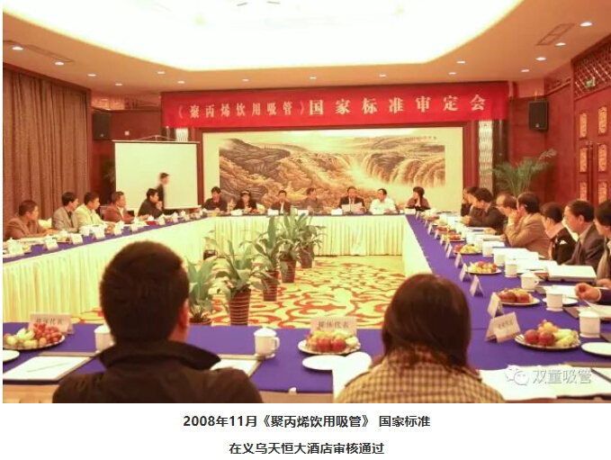 其實,在標準編制起草過程中,“雙童”也曾邀請一些同行企業(yè)共同參與,但由于當時大家的標準意識還比較薄弱,再加上標準編制過程中還需要企業(yè)承擔一定費用,這讓其他企業(yè)都望而卻步,“雙童”自然地成為了吸管行業(yè)承制國家標準的單一企業(yè)。2008年11月,《聚丙烯飲用吸管》 國家標準審定會在義烏天恒大酒店召開。會上審核通過了該項國家標準,成為當時金華地區(qū)第一件完全意義上的國家標準。