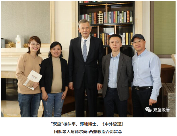 近日,“雙童”樓仲平作為中國隱形冠軍企業(yè)代表受邀和中國隱形冠軍研究第一人的鄧地博士及《中外管理》團隊一起前往上海采訪“隱形冠軍”之父赫爾曼·西蒙教授。據(jù)悉,此次西蒙教授訪華是受邀在上海進博會進行分享。借此機會,《中外管理》團隊有幸約到了西蒙教授,并與樓仲平和鄧地博士在他所入住的酒店進行了兩個半小時的采訪!在這次千載難逢的交流中,他們產(chǎn)生了哪些思維碰撞,又有哪些精彩亮點呢?跟著吸管妞一起去看看吧!