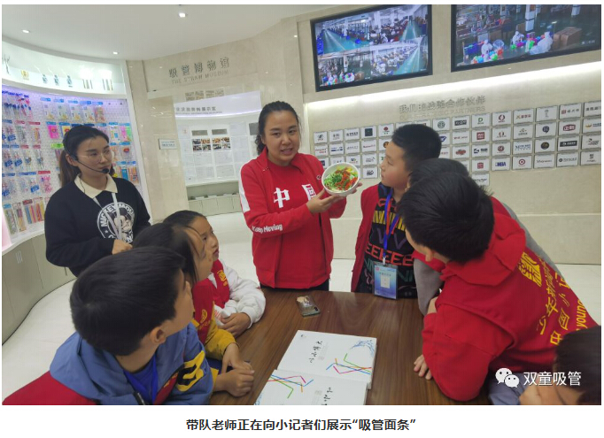 接著,吸管妹妹向小記者們介紹了吸管的發(fā)展歷史、早期的吸管生產(chǎn)技術(shù)以及各種形態(tài)的吸管的由來等!小記者們也緊跟吸管妹妹身后,耐心地聆聽講解!